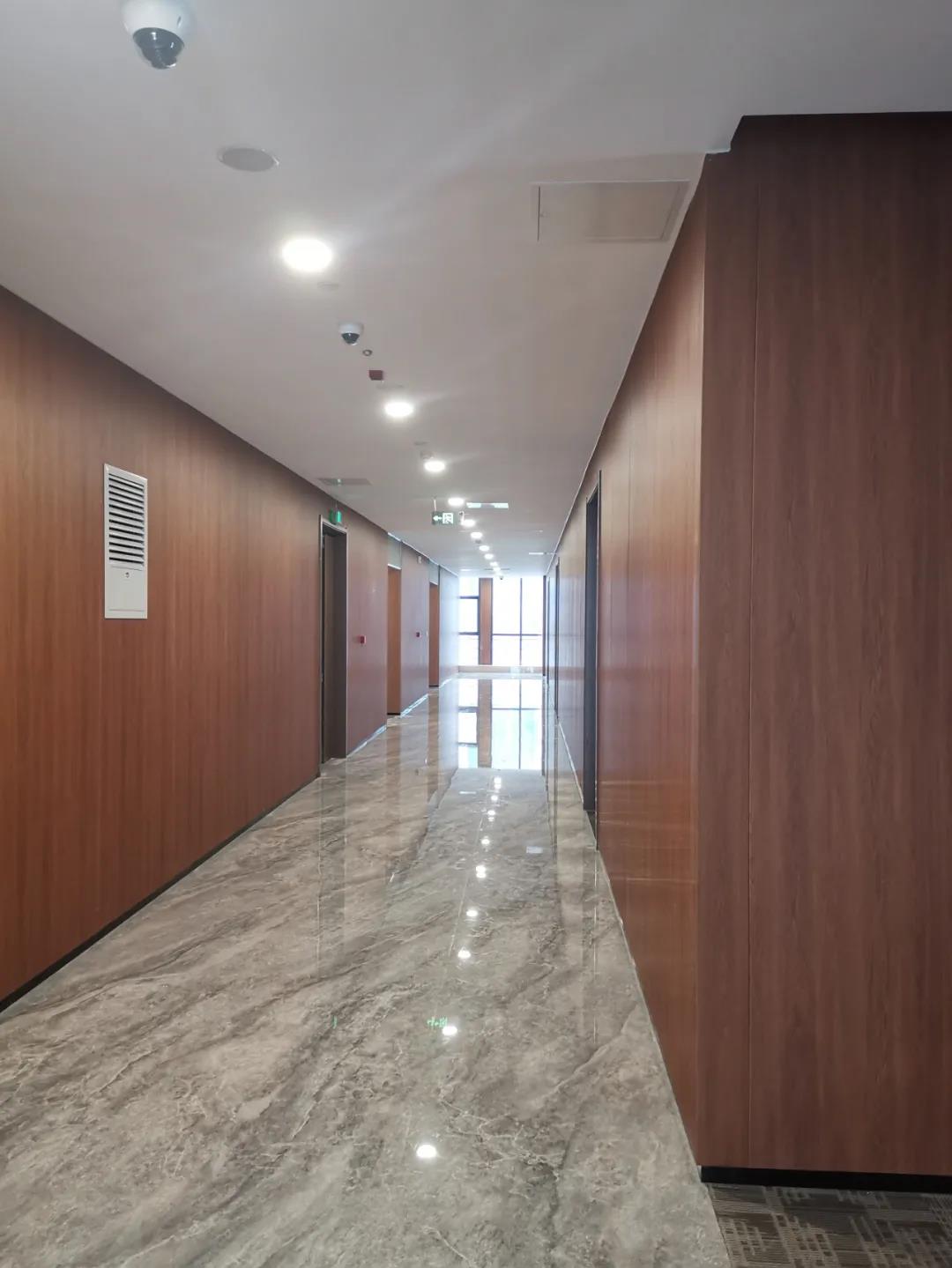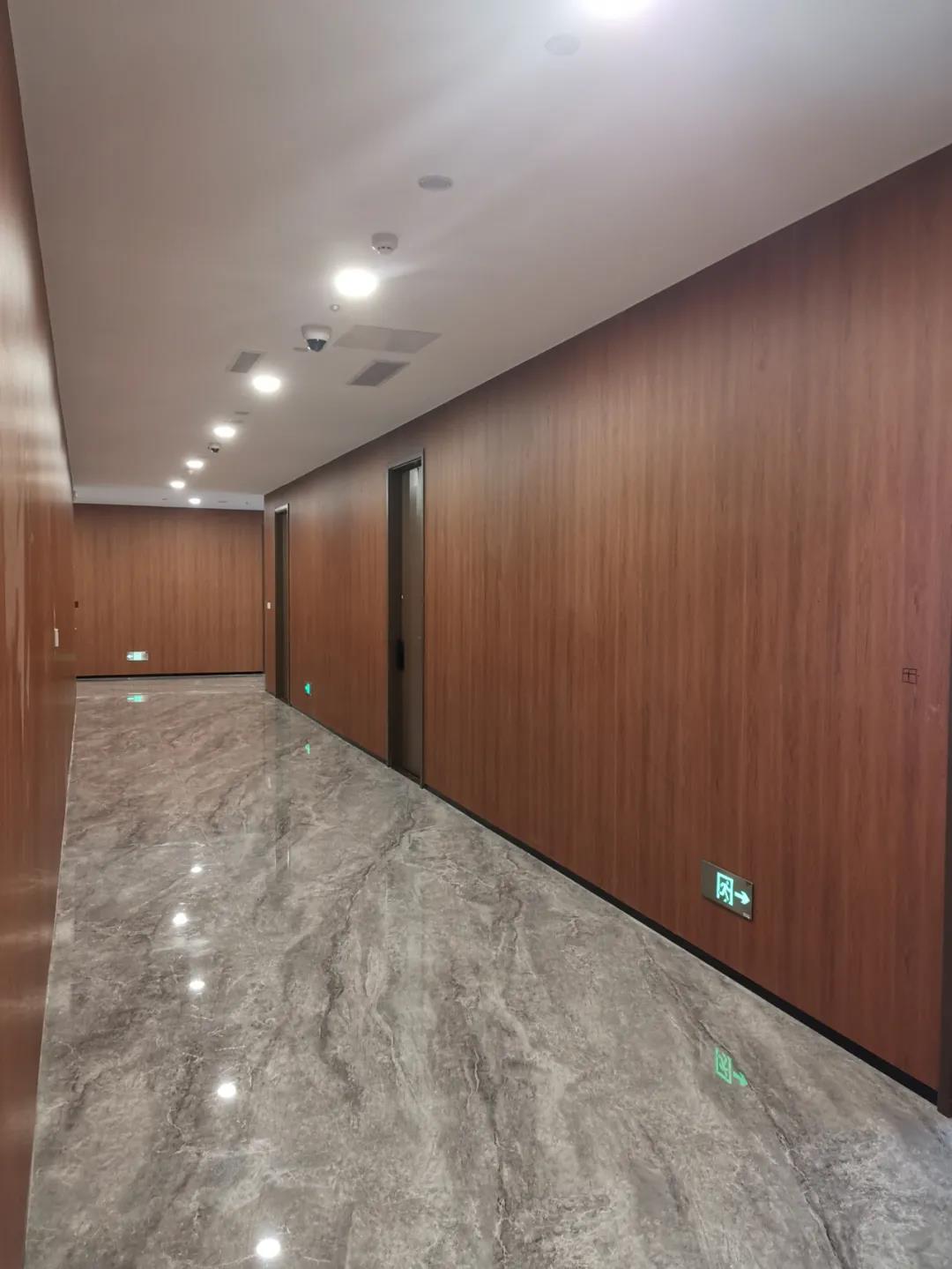 華夏銀行濟南分行此次入駐的是漢峪金融商務中心東北向的A6-3號樓,樓層設計由上海現代建筑設計院主導,設計風格是他們一向擅長的簡約大氣,此次項目墻面大面積采用了PIVOT的圖片產品,1-4樓辦公區(qū)域深色胡桃木的整體墻面更顯沉穩(wěn)厚重,與華夏銀行一直以來深入人心“最具社會責任金融機構”的企業(yè)形象高度匹配,彰顯企 業(yè)風采。